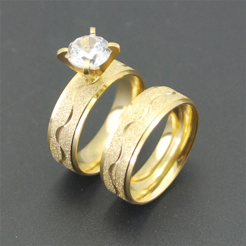Tang Couple Engagement Ring For Women Men Sand Blasted Gold Color