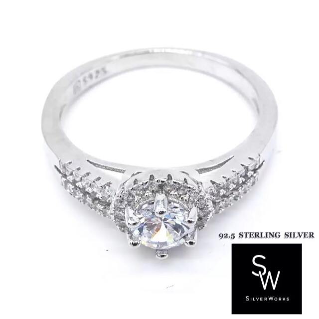 Silverworks 925 Halo Stylish Engagement Ring Shopee Philippines