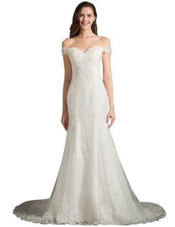 Fanciest Womens Off Shoulder Wedding Dresses Lace Mermaid Bridal