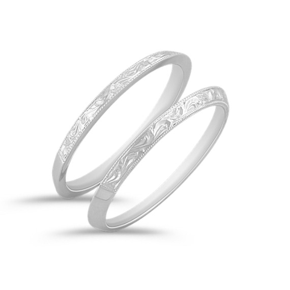 Womens 14k White Gold Wedding Band Engraved Baroque Style