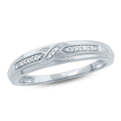 Ladies Diamond Accent Criss Cross Wedding Band In 10k White Gold